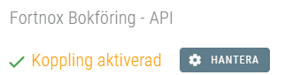 • Intill den aktiverade API-kopplingen till Fortnox bokföring trycker du [Hantera].