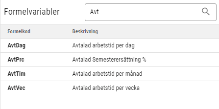 Det kanske inte är solklart för alla vad våra olika formelvariabler betyder. I löneartsregistret kan man få fram en förteckning med en kortfattad förklaring på varje formelvariabel. Gå in på valfri löneart, klicka på symbolen med de fyra räknesätten som finns på raderna för Antalsformel, Beloppsformel och Summaformel. Skriv i sökrutan för att få förklaring.