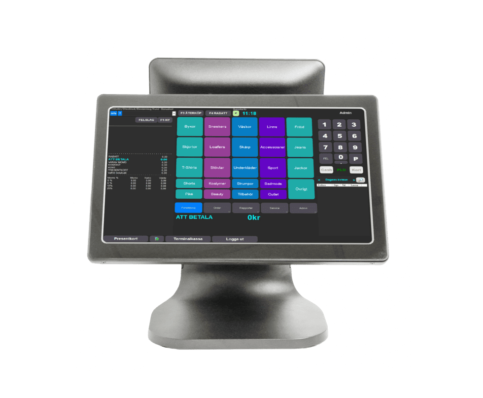 Du har som användare full kontroll över pekskärmens layout. Knappar och menyer kan anpassas efter dina behov för administration och försäljning.